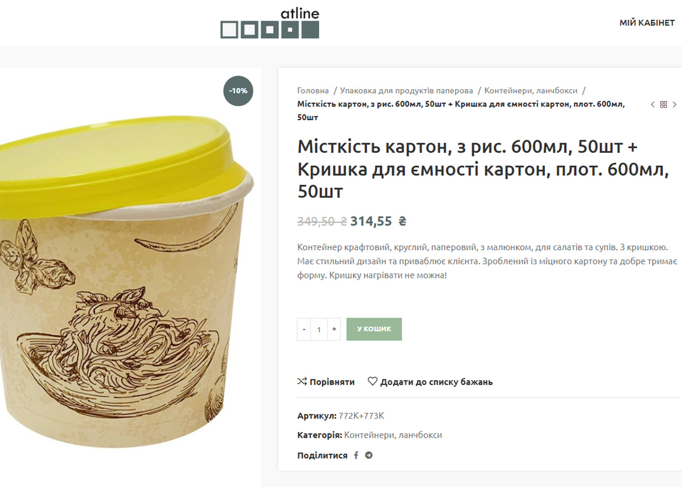ATLINE — компанія, що спеціалізується на продажу пакувальної тари та одноразового посуду, орієнтуючись на сегмент B2B.