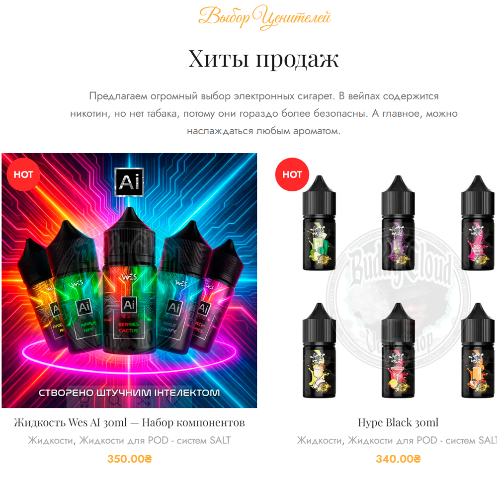 Інтернет-магазин Buddy Cloud спеціалізується на продажу електронних сигарет, вейпів та супутніх товарів. .
